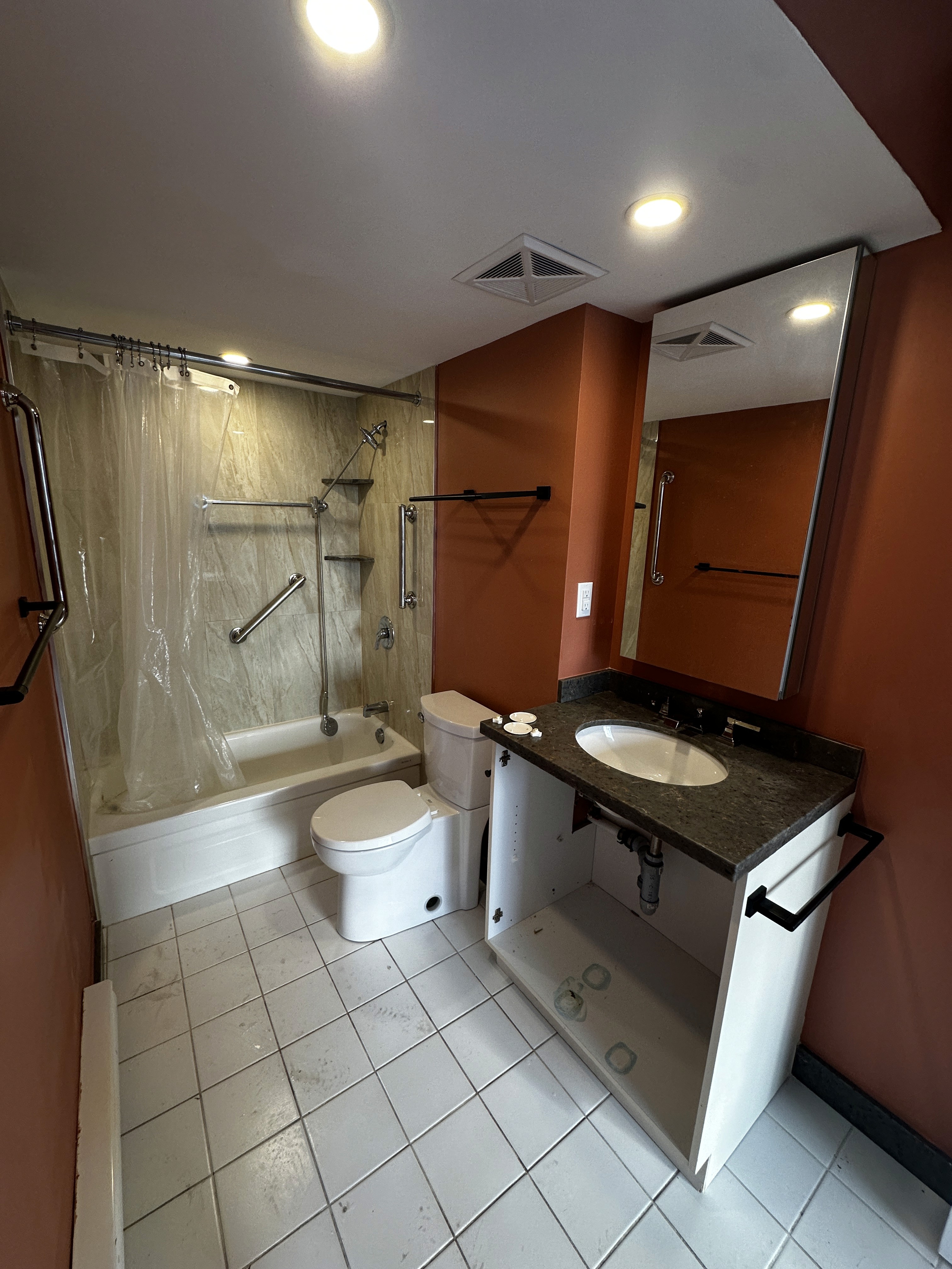 • Full Bathroom Renovation • Walk-In Shower Conversion • Accessibility Upgrades (Grab Bars & Bench) • Custom Vanity Installation • Tile Installation (Floor & Walls) • Glass Shower Enclosure • Plumbing & Electrical Updates • Painting & Finishing