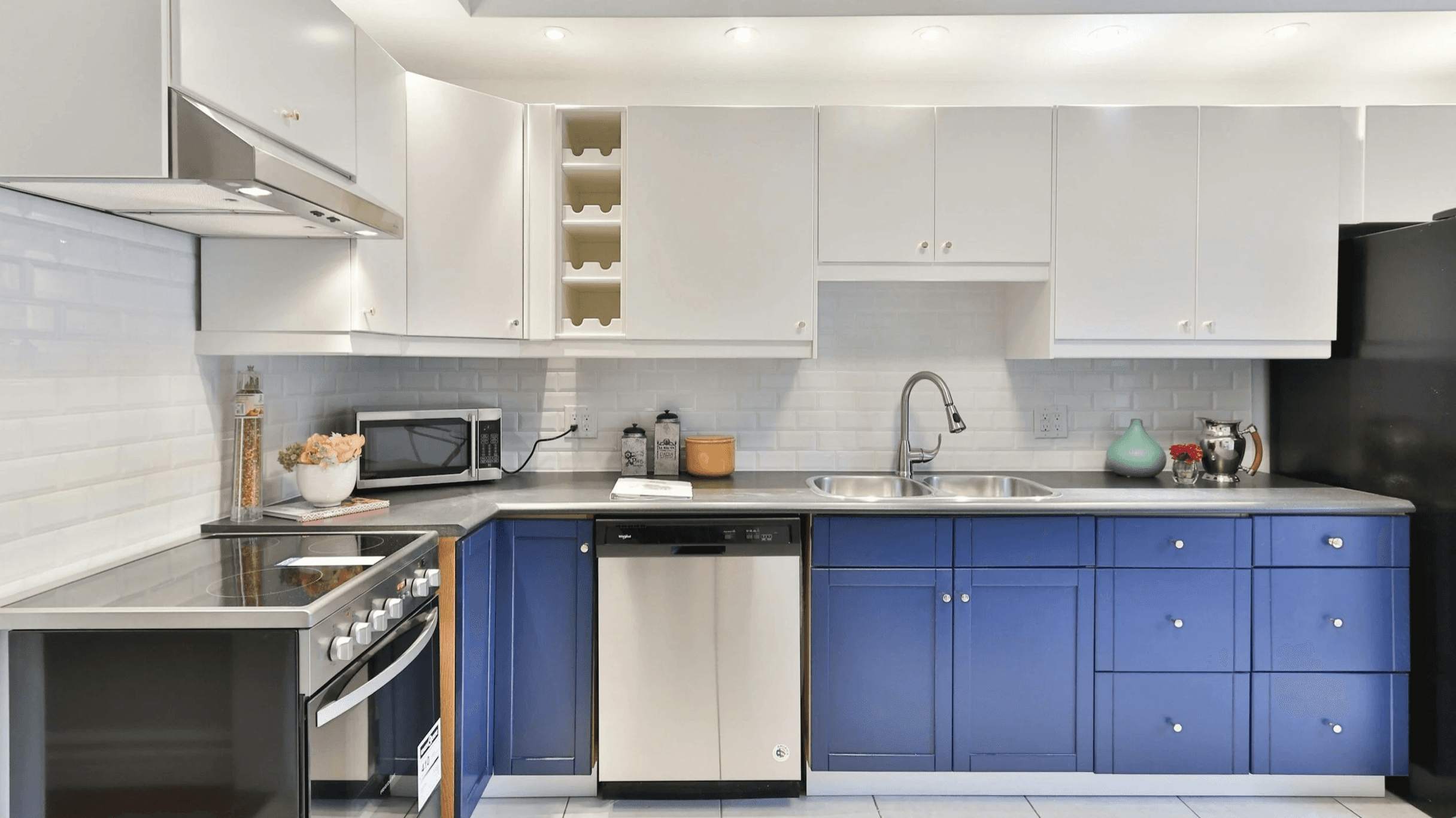 This is an example of a small and sweet update, the kitchen has been painted, a backsplash added, with some new fixtures and appliances.